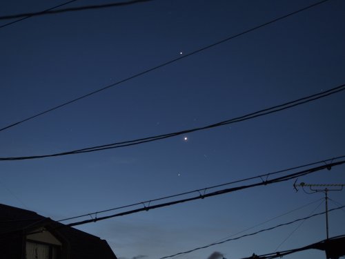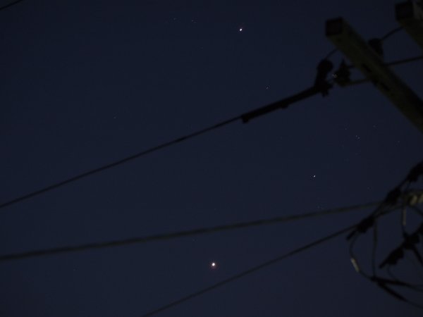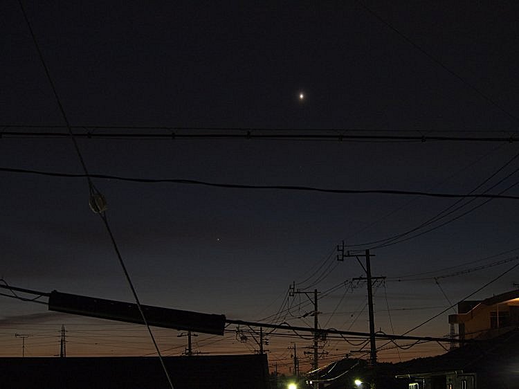 木星 -2.2等級 高度25.6°金星 -4.4等級 高度12.5°露出60秒 F4.5 ISO200