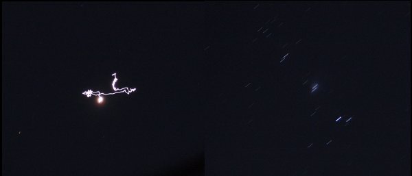 オリオン大星雲とすばる 露出8秒,4秒 F5.6 150mm ISO 2000 by E-PL2![]()