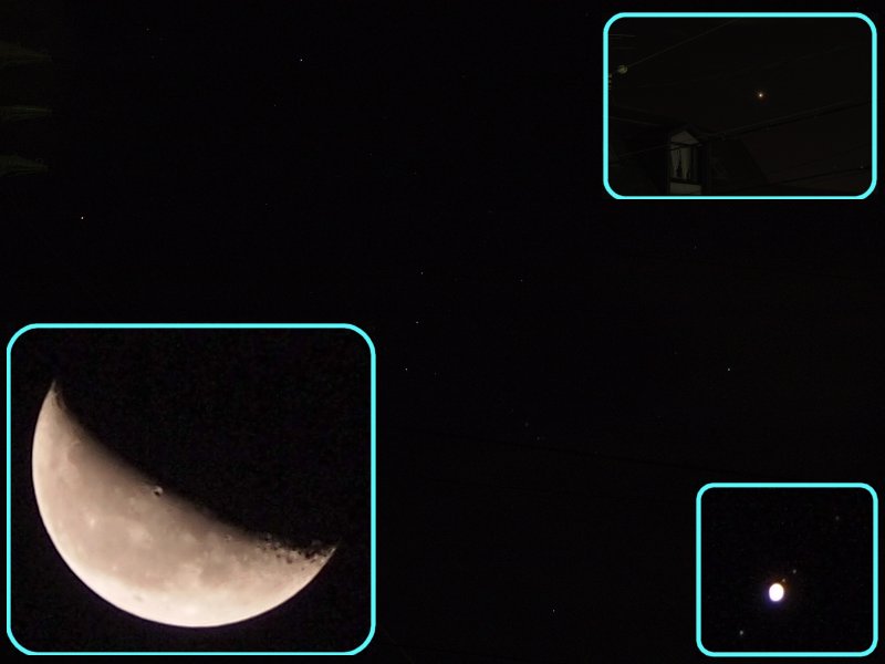 月 露出1/6秒 F5.7 ISO400 by EX-H15 月 火星 土星 スピカ 露出15秒 F5.6 ISO200 by E-PL2