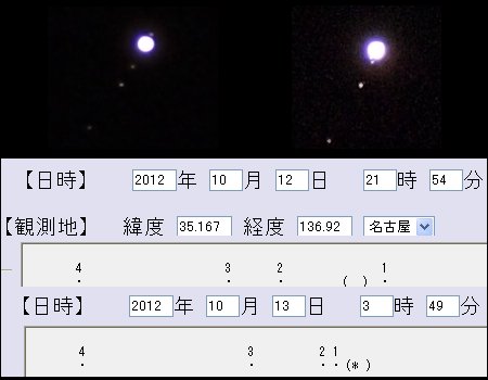 2012年10月 木星衛星6時間の動き 露出1秒 F5.6 150mm ISO 500 by E-PL2