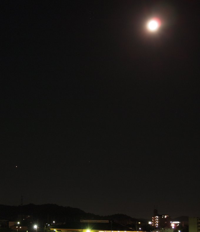 2012年10月31日19:32 木星とアルデバランとプレアデス星団と月
