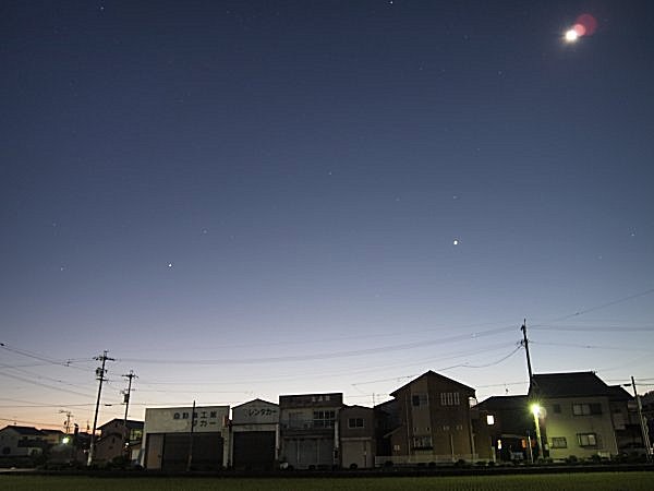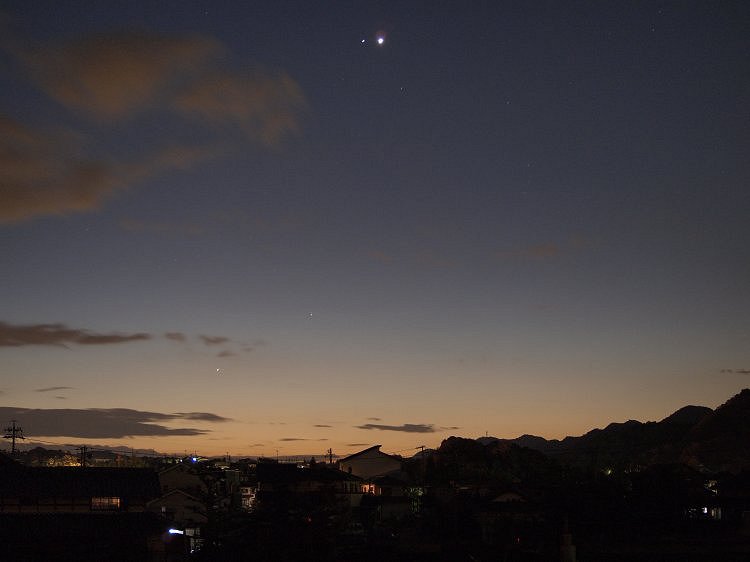 2012年11月10日5:54 月と金星と恵那山 露出1/10秒 F3.5 14mm ISO 200 by E-PL2