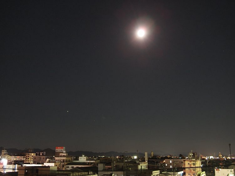 2012年10月12日2:54 月 高度19.8°視半径947.4”と金星 高度12.2°露出5秒 F5.6 74mm ISO 200 by E-PL2