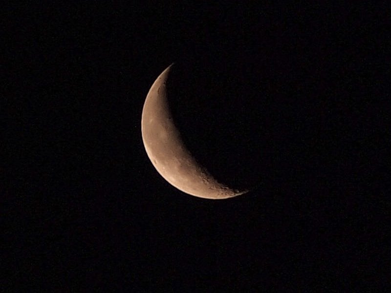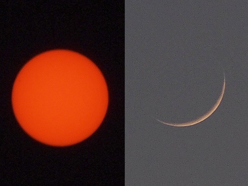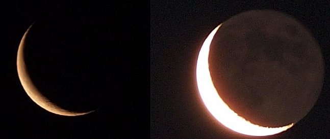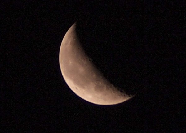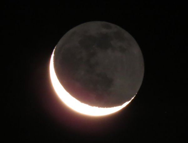 月 19:04 視半径888.7" 月齢2.4 高度18.0°露出1/60秒 F5.6 150mm ISO 200 by E-PL2