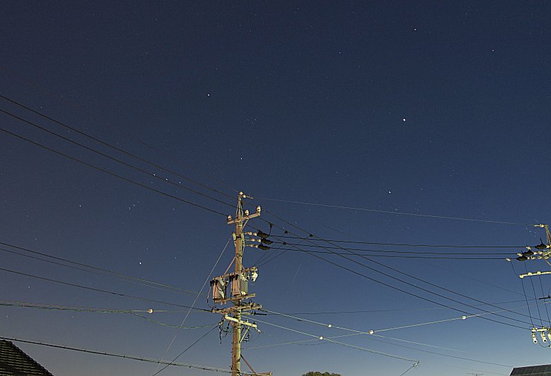 2013年1月7日 3:53 月(月齢24.4、高度20.9°) 土星(0.6等級 高度21.6°) 露出1秒 F5.6 150mm ISO 500 by E-PL2
