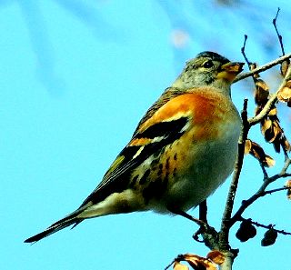 アトリがアキニレの実を食べに |