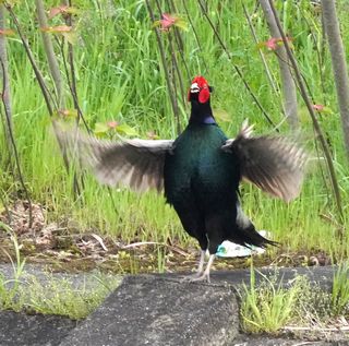 河畔でキジが大きな声で鳴いた。繁殖期を