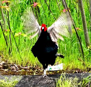 で出かけ餌場に飛翔して来たところを狙うと羽を広